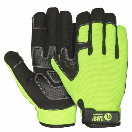 Back: Spandex for flexibility and comfort, featuring a hi-vis reflective knuckle strap for increased protection and visibility.